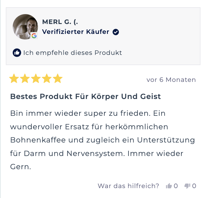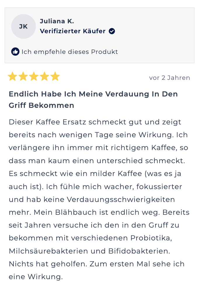 „Ich war anfangs durchaus skeptisch, ob ich den Geschmack mögen würde, aber ich muss sagen ich bin begeistert. Ich liebe den Geschmack. Es schmeckt wie ein leckerer Chai Kakao.“